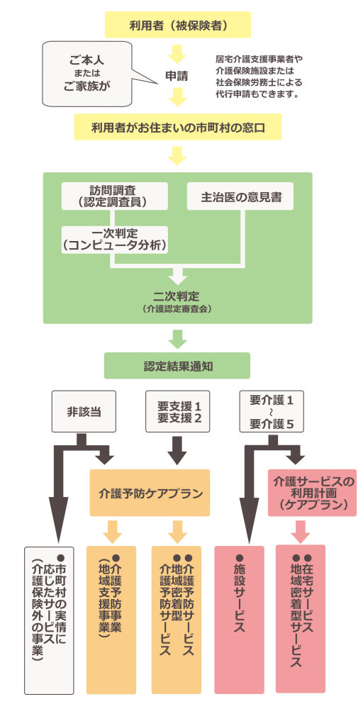 介護保険を利用したサービスを受けるためには、要介護(要支援)認定の申請書を提出する必要があります。詳しくはお住まいの市町村窓口へお問い合わせください。