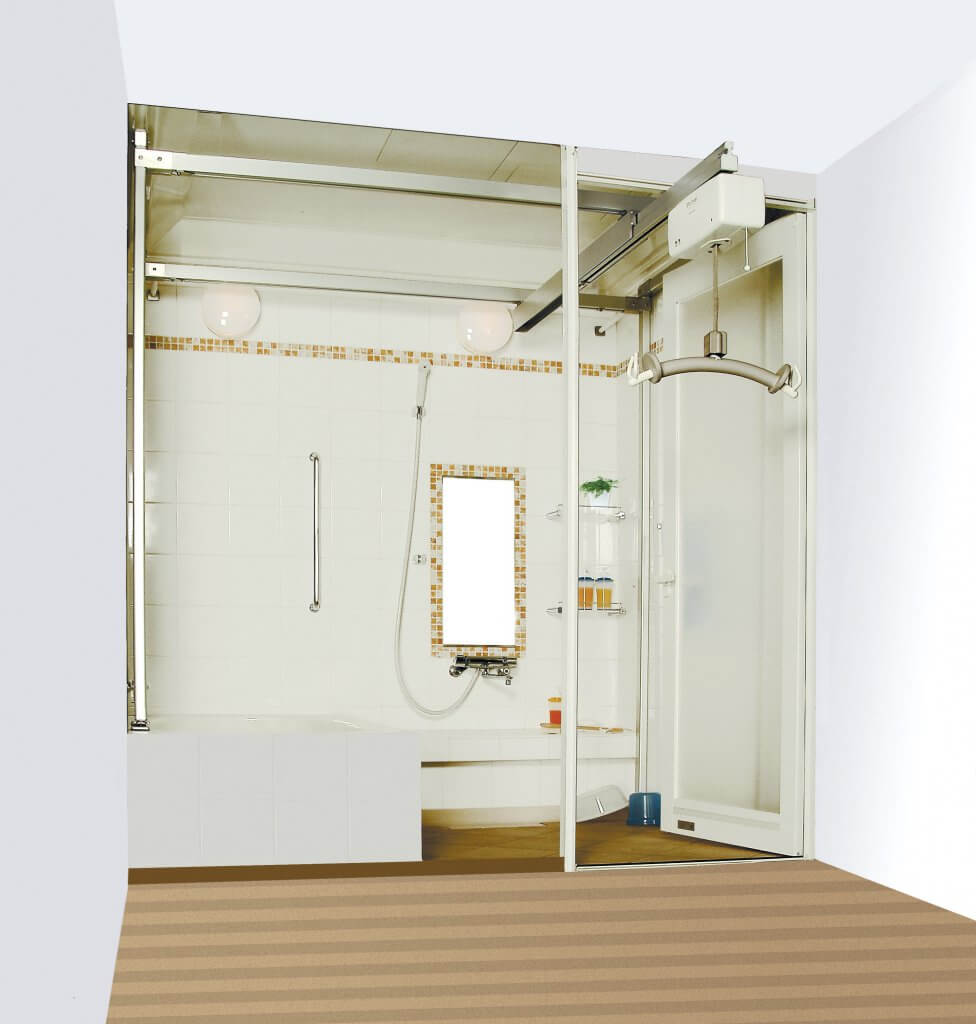 脱衣場までは車いすで移動できるけど、脱衣場から浴室に入ったり、そのまま湯船にも浸かりたい。