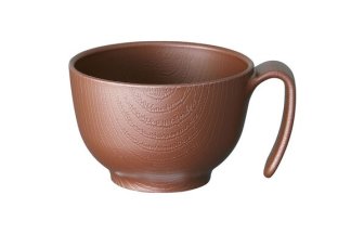 木目 持ちやすい茶椀ハンドル付 ブラウンクリームグリーン 手を差し込んで安定させられる、握りやすい太めのハ…