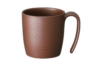 木目 持ちやすいコップ ブラウンクリームグリーン 手を差し込んで安定させられる、握りやすい太めの ハンドル(…