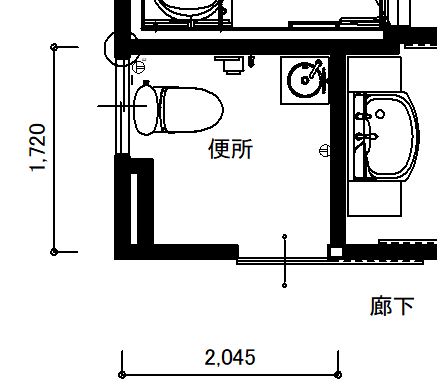 ご高齢のお母様が、改装後も無理なくトイレ動作を行えるよう、まずは便器と手洗器の配置が異なる2つのプランを作成しました。お施主様へのご説明では、図面とパースを用い、さらに実際のトイレ空間で位置を確認しながら検討を行い、より使いやすいプランを最終案として決定しました。便器の前に大きなボウルの手洗器を設置したことで、ご高齢のお母様にとって動線がとて もスムーズになりました。